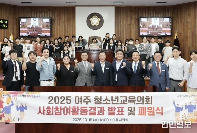 한민일보 서울포커스 전희주 기자 | 경기도여주교육지원청은 10월 15일, 여주시의회 본회의장에서 '2025 여주 청소년교육의회 발표회 및 폐원식'을 개최했다.