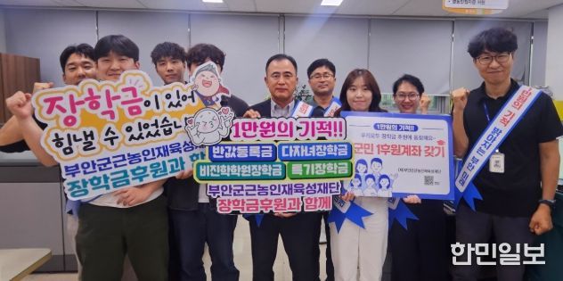 한민일보 서울포커스 김용택 기자 | 부안군 농업정책과는 지난 15일, 부안군근농인재육성재단이 추진 중인 ‘장학금 1군민 1후원계좌 갖기’ 캠페인에 동참했다.