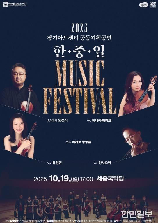 한민일보 서울포커스 전희주 기자 | 여주세종문화관광재단이 오는 10월 19일, 경기아트센터와 공동기획으로 ‘한·중·일 뮤직 페스티벌’을 세종국악당에서 선보인다.