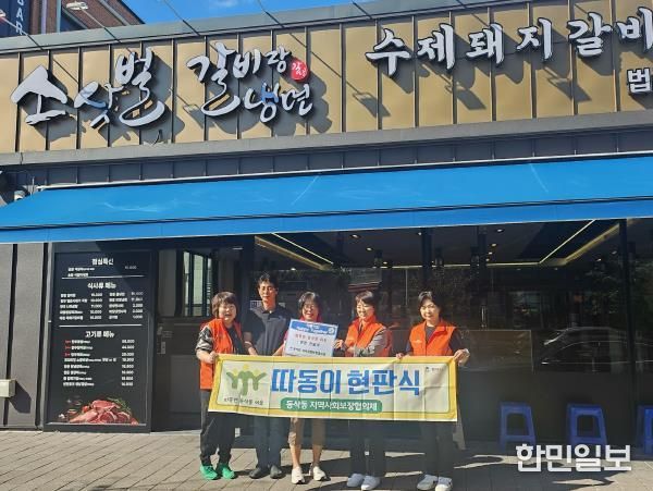 한민일보 서울포커스 황준형 기자 | 평택시 동삭동 지역사회보장협의체는 지난 15일 관내 취약계층 10가구에 월 2회 정기적으로 5가지 밑반찬을 지원할 예정인 소삿벌 법원직영점에 ‘따동이’ 5호점 현판을 전달했다.