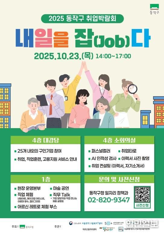 한민일보 서울포커스 곽중희 기자 | 동작구가 오는 23일 오후 2시 구청 신청사에서 2025 취업박람회 ‘내일을 잡(Job)다’를 개최한다고 밝혔다.