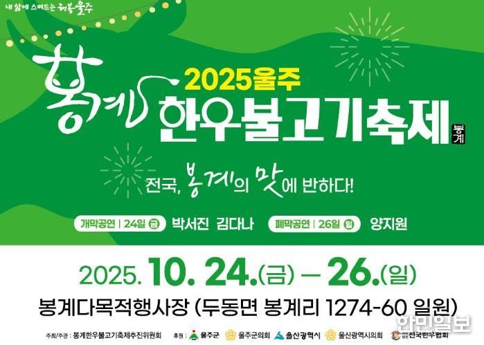 오병국 봉계한우불고기축제 추진위원장은 “이번 축제는 울주군민과 관광객이 함께 즐길 수 있는 참여형 축제로 준비했다”며 “봉계의 맛과 정이 살아 있는 축제를 통해 지역 상권이 활기를 되찾길 바란다”고 말했다.