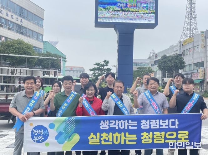 한민일보 서울포커스 김용택 기자 | 지난 16일 부안군청 민원과 직원 및 바르게살기운동 부안군협의회(회장 장대현) 회원 10여 명이 손을 맞잡고 조직문화 개선을 위한 청렴 캠페인을 실시했다.