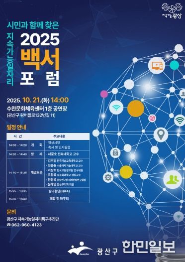 광주 광산구는 21일 오후 2시부터 수완문화체육센터에서 '시민과 함께 찾은 지속가능 일자리'를 주제로 2025 지속가능 일자리 백서 포럼(공개토론회)을 개최한다고 밝혔다.