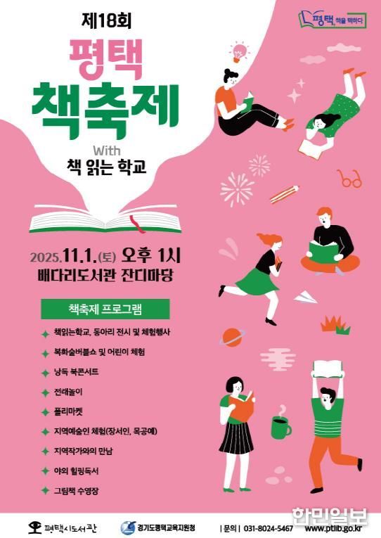 한민일보 서울포커스 황준형 기자 | 평택시의 대표 시민독서운동 ‘평택, 책을 택하다’ '2025 평택 책축제 with 책 읽는 학교'가 오는 11월 1일 토요일 오후 1시 배다리도서관 잔디마당에서 개최된다.