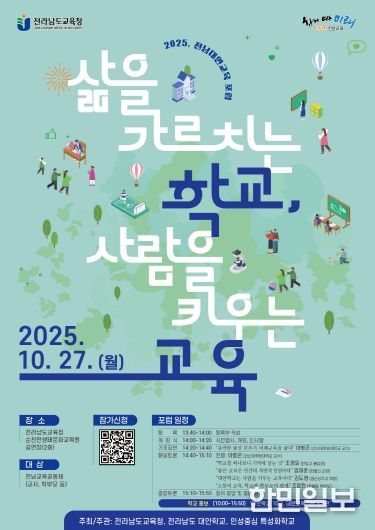 한민일보 서울포커스 임철현 기자 | 전라남도교육청은 오는 27일 순천만생태문화교육원에서 학부모·교사가 참여하는 ‘2025 전남 대안교육 포럼’을 개최한다.