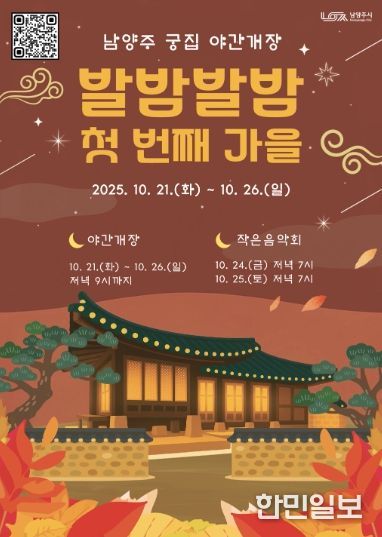시 관계자는 “남양주 궁집은 고즈넉한 전통 건축미와 정취를 간직한 공간으로 이번 행사를 통해 관람객이 특별한 가을밤의 감성을 느낄 수 있을 것이라 기대한다”며 “앞으로도 남양주 궁집이 도심 속의 힐링 명소로 활용될 수 있도록 다양한 프로그램을 진행하겠다”고 말했다.