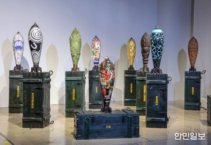 카티야 트라불시의 작품은 군사적 파괴와 살상 도구의 상징인 ‘포탄’을 섬유와 도자, 금속 등 정교한 수공예 조각으로 전환한 설치 작품으로 작가가 인도, 이란, 중국, 모로코 등 12개국을 여행하며 현지에서 만난 장인들과 협업해 완성했다.