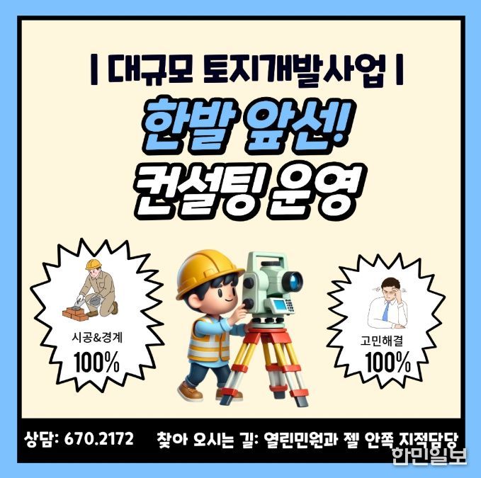 한민일보 서울포커스 김은금 기자 | 고성군은 대규모 토지개발사업의 시행신고 단계부터 지적공부정리 완료 단계까지 한발 앞선 맞춤형 컨설팅을 운영하여 사업시행자와 측량수행자, 담당자가 효과적으로 각자의 업무를 수행할 수 있도록 지원하고 있다.