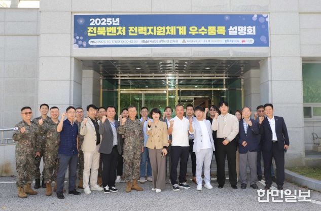한민일보 서울포커스 박용남 기자 | 국방기술진흥연구소 전북국방벤처센터는'전북벤처 협약기업 전력지원체계분야 우수품목 설명회'를 10월 17일에 35사단 전시실에서 개최했다고 밝혔다.
