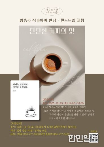 한민일보 서울포커스 임철현 기자 | 제주도서관은 오는 25일 오후 2시 제주도서관 내‘별이 내리는 숲’에서 카페단단 대표이자 에세이 작가인 방승주 작가와의 만남을 운영한다.