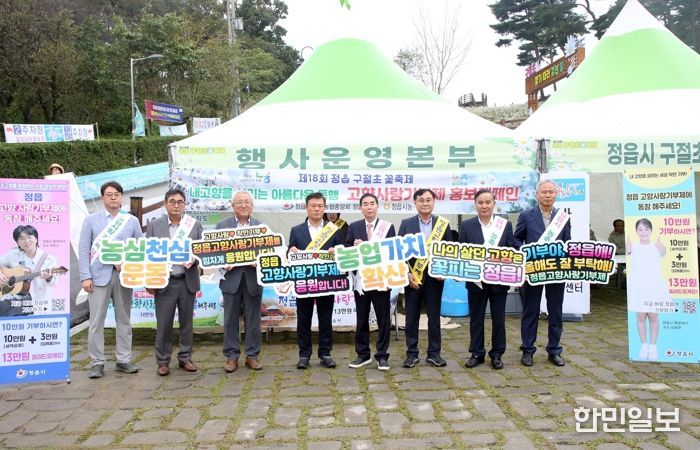 한민일보 서울포커스 김용택 기자 | 정읍시와 지역 농·축협이 지난 18일 '제18회 정읍 구절초 꽃축제' 현장에서 고향사랑기부제 합동 홍보 캠페인을 펼쳤다.