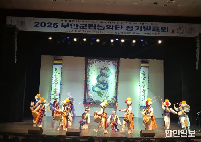 한민일보 서울포커스 김용택 기자 | 부안군립농악단은 지난 10월 17일 오후 6시 30분, 부안예술회관 2층 공연장에서 열린 2025년 부안군립농악단 정기발표회를 군민들의 큰 호응 속에 성황리에 마쳤다.
