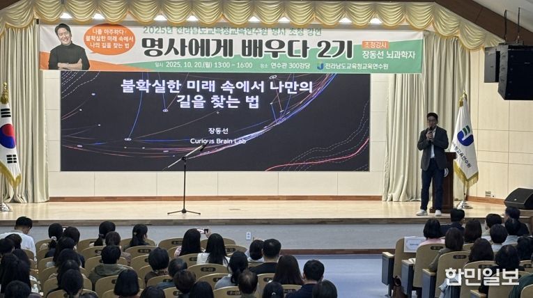 한민일보 서울포커스 임철현 기자 | 전라남도교육청교육연수원(원장 김병인)은 10월 20일 연수관에서 ‘명사에게 배우다’ 제2기 특강을 갖고 교육가족들에게 새로운 영감과 사유의 시간을 제공했다.