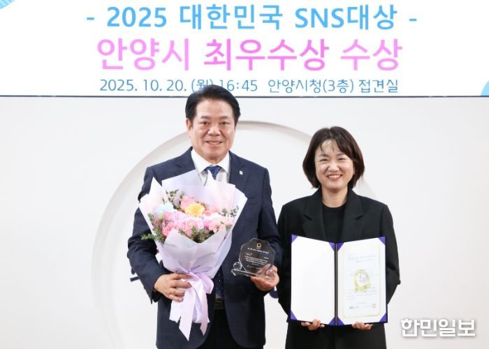한민일보 서울포커스 김성윤 기자 | 안양시가 ‘제15회 2025 대한민국 SNS 대상’ 기초지방자치단체 시 부문에서 최우수상을 수상했다.