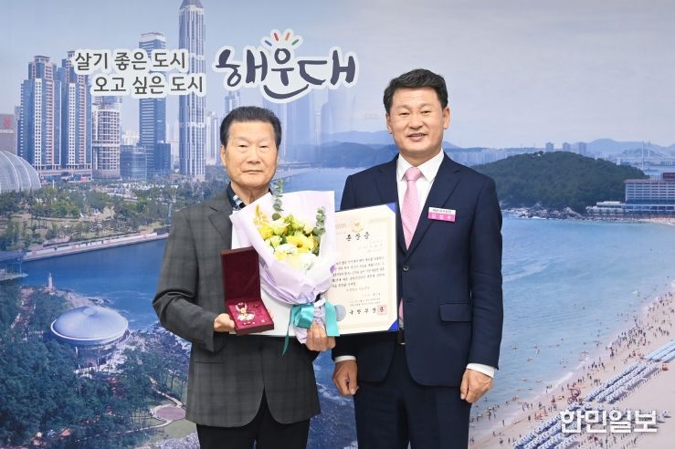 한민일보 서울포커스 임광현 기자 | 해운대구는 지난 15일, 6‧25전쟁에 참전해 공을 세운 故 김용주 참전용사의 화랑무공훈장을 유족인 동생 김용범 씨에게 국방부장관을 대신해 전수했다.
