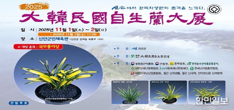 한민일보 서울포커스 임광현 기자 | 2025 대한민국자생란대전이 오는 11월 1일부터 2일까지 압해도 신안군민체육관에서 개최된다. 이번 대전은 전국에서 출품된 약 2,000여 점의 자생란 작품을 선보이며, 멸종위기종을 포함한 희귀 자생란의 보존과 난문화 대중화, 산업화 기반 조성을 목표로 한다.