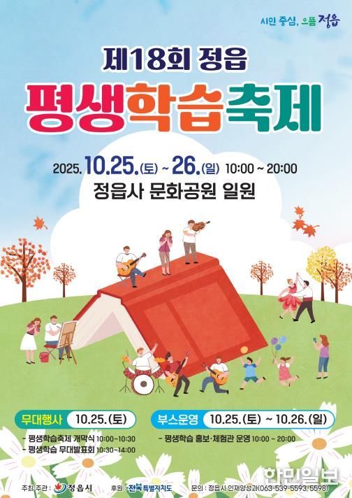 한민일보 서울포커스 김용택 기자 | 시민들이 한 해 동안 갈고닦은 배움의 성과를 나누는 ‘제18회 정읍 평생학습축제’가 오는 25일과 26일 이틀간 정읍사문화공원 일대에서 열린다.
