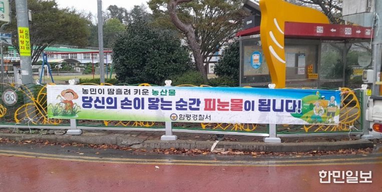 또한 범죄 발생·112신고 이력 등 치안 데이터 분석을 통해 취약 요소 선정·공유하여 취약 장소에 대해 이동형 CCTV 설치하고, 농산물 보관창고 등급관리제 정비 및 사전 점검하는 등 예방 활동을 추진(10. 15 ~ 11. 30, 7주간)하고 있으며 지역민의 지속적인 관심과 농산물 도난 예방을 위해 올해 농산물 절도발생 지역 등 6개소에 플래카드를 게첩(揭帖)했다.