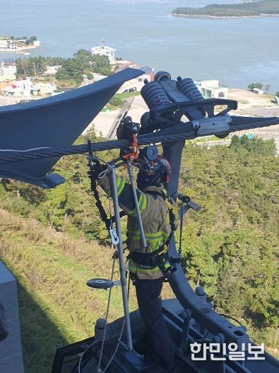 한민일보 서울포커스 최성훈 기자 | 진도소방서는 10월 20일 명량해상케이블카 진도스테이션에서 삭도시설 민관합동 구조훈련을 실시했다. 이번 훈련은 전국적으로 노후화가 진행 중인 관광용 삭도설비와 최근 증가하는 설치 현황에 대응하기 위해 마련됐다.