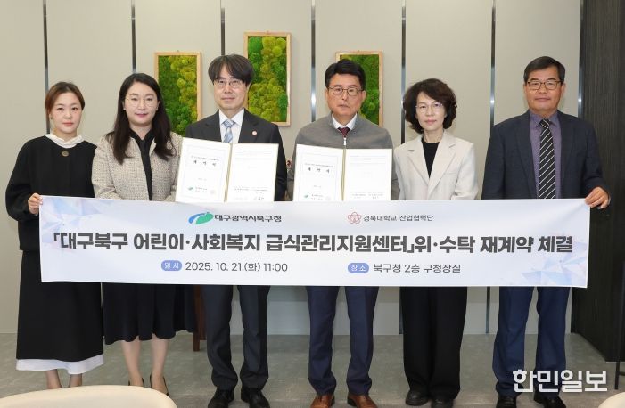 한민일보 서울포커스 김윤희 기자 | 대구 북구청은 10월 21일 11시 구청장집무실에서 경북대학교 산학협력단(단장 김규만)과 대구 북구 어린이·사회복지급식관리지원센터 위탁․운영에 관한 계약을 체결했다.