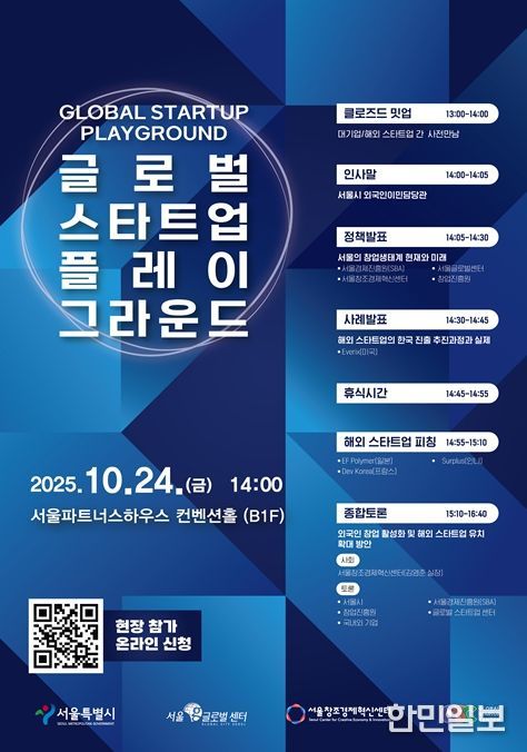 임재근 서울시 외국인이민담당관은 “이번 글로벌 스타트업 플레이그라운드는 다양한 창업 관계자들이 모여 창업 분야의 다양한 목소리를 한자리에서 들을 수 있는 자리인 만큼, 우수한 창업인재가 유입될 수 있도록 현장의 목소리를 서울시와 유관 기관과의 협업을 통해 꾸준히 창업지원 정책에 반영할 것”이라고 말했다.
