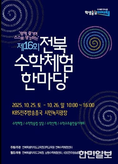 한민일보 서울포커스 임철현 기자 | 전북특별자치도교육청과학교육원은 오는 25~26일 KBS전주방송총국 시민녹지광장에서 ‘제16회 전북수학체험한마당’을 개최한다고 22일 밝혔다.