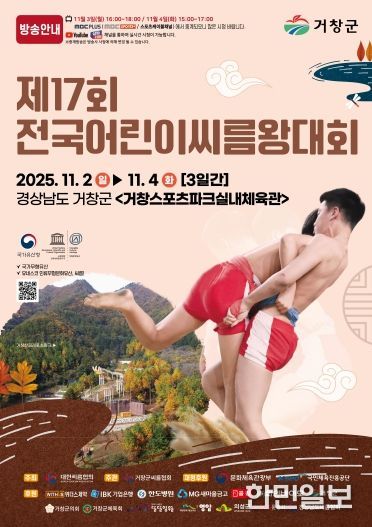 거창군은 대한씨름협회(회장 이준희)가 주최하고 거창군씨름협회(회장 박진영)가 주관하는 ‘대통령배 2025 전국씨름왕선발대회’와 ‘제17회 전국어린이씨름왕대회’를 오는 29일부터 11월 4일까지 7일간 거창스포츠파크 실내체육관에서 개최한다고 밝혔다.