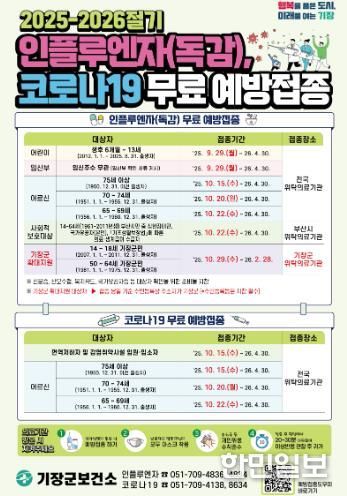 확대 지원 대상자는 오는 2026년 2월 28일까지 기장군 내 위탁의료기관 64개소에서 무료 접종이 가능하다.