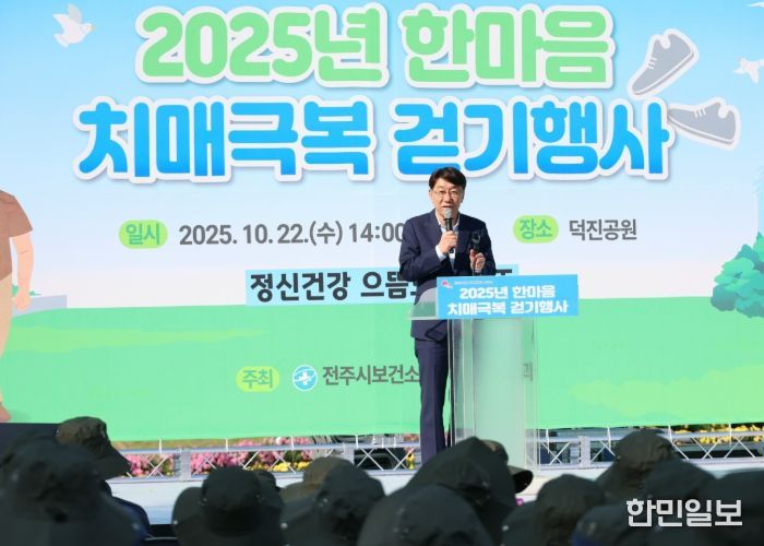 전주시보건소는 22일 덕진공원 일원에서 우범기 전주시장과 최주만 전주시의회 부의장, 치매환자와 가족 등 전주시민 700여 명이 참석한 가운데 ‘2025년 한마음 치매극복 걷기’ 행사를 개최했다.