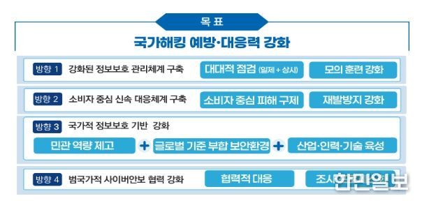 한민일보 서울포커스 기자 | 과학기술정보통신부와 관계부처는 전방위적인 해킹 사고로 국민 불안이 가속화되는 현 상황을 신속히 극복하고 국가 전반의 정보보호 역량을 강화하기 위해 '범부처 정보보호 종합대책'을 수립하여 10월 22일 대국민 브리핑을 통해 발표했다.