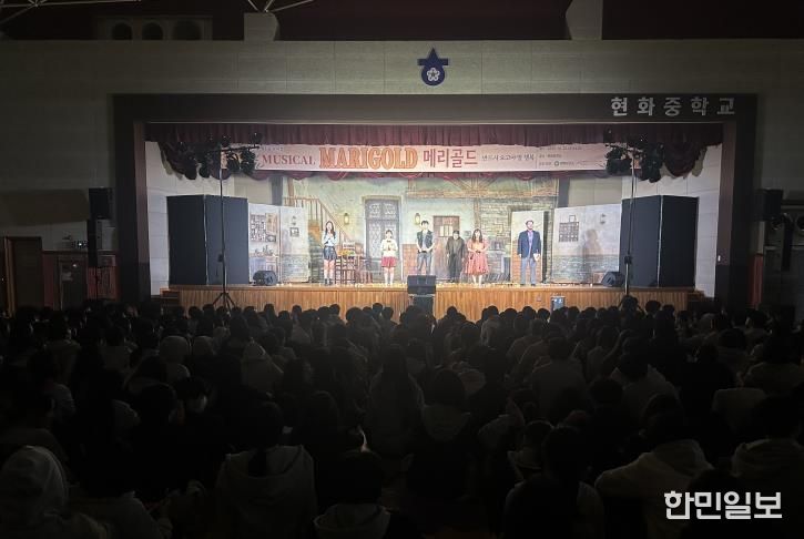 지난 10월 1일과 22일 ▲동일공업고등학교 ▲현화중학교에서 진행된 뮤지컬 '메리골드'는 옴니버스 형식으로 구성되어, 서로 다른 사연을 지닌 인물들의 이야기를 통해 청소년들이 가족과 친구, 그리고 자신의 삶을 되돌아보며 생명의 소중함과 공감의 가치를 느낄 수 있도록 기획됐다.