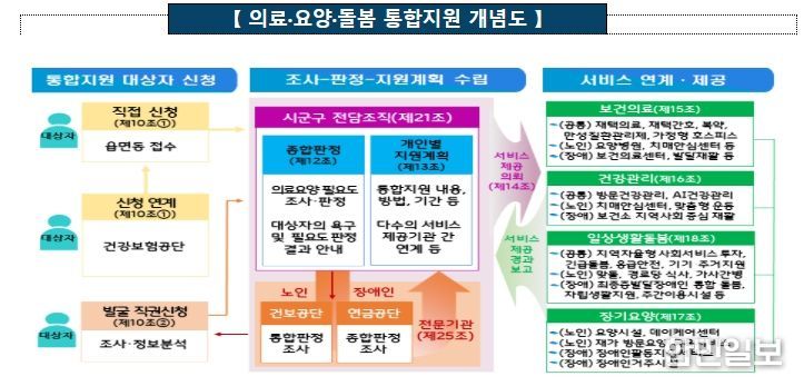 '의료‧요양‧돌봄 통합지원 시범사업'은 이번 정부의 복지분야 핵심 국정과제*로‘살던 곳에서 존엄하고 건강한 삶’을 위해 시·군·구가 중심이 되어 지역사회 통합돌봄 체계를 구축하는 사업이다. 2026년 3월 전국적으로 시행될 예정이며 현재 229개 전 지자체가 시범사업**에 참여하여 본사업 시행을 준비하고 있다.