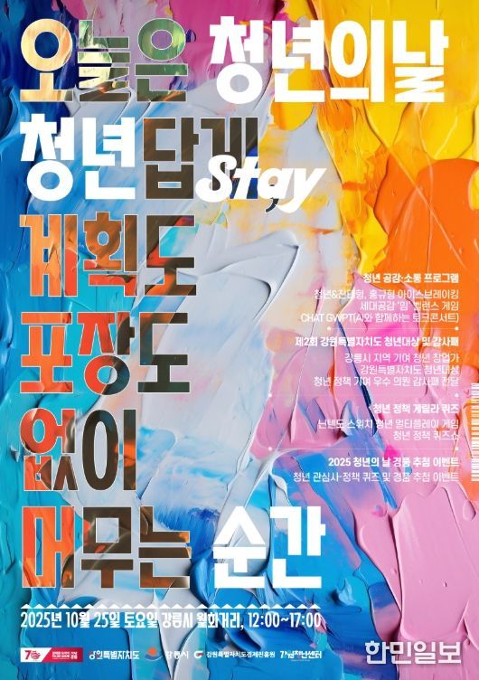 한민일보 서울포커스 임경복 기자 | 강원특별자치도와 강릉시가 주최하는 2025 강원특별자치도 청년의 날 행사가 오는 25일 오후 12시부터 6시까지 강릉 월화거리(구한전 옆)에서 열린다.