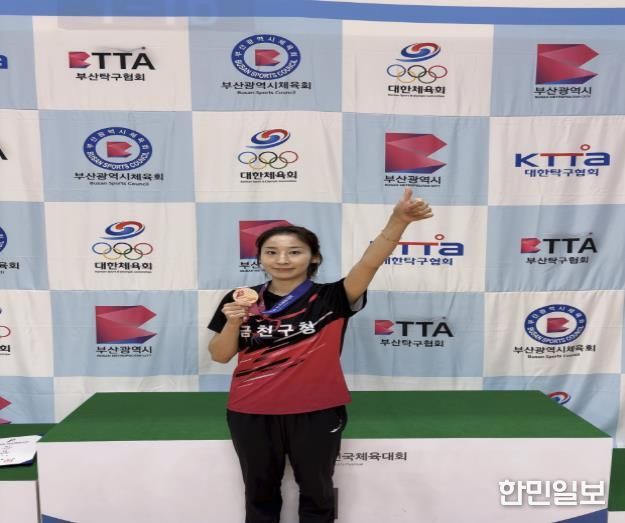 한민일보 서울포커스 곽중희 기자 | 금천구는 제106회 전국체육대회에서 금천구청 여자탁구단 송마음 선수가 여자 일반부 개인전에서 3위를 차지했다고 밝혔다.