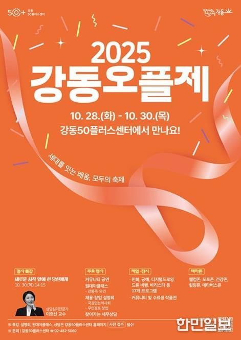 한민일보 서울포커스 박정민 기자 | 강동구는 오는 10월 28일부터 30일까지 3일간, 강동50플러스센터(올림픽로 752, 천호동)에서 ‘2025 강동오플제’를 개최한다고 24일 밝혔다.
