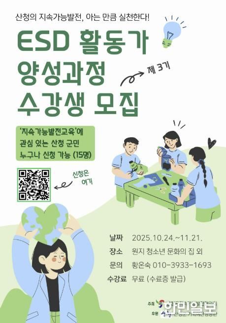 한민일보 서울포커스 김은금 기자 | 산청군지속가능발전협의회는 24일 ‘ESD(지속가능발전교육) 활동가 양성과정 제3기’ 운영에 돌입했다고 밝혔다.