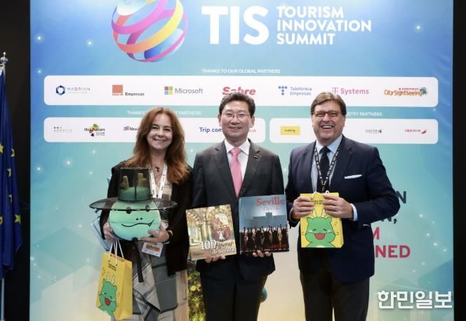 한민일보 서울포커스 김성윤 기자 | 이상일 용인특례시장은 23일 오후(현지 시간) '관광 혁신 서밋(Tourism Innovation Summit) 2025'가 열리고 있는 스페인 세비야의 피베스에서 호세 루이스 산스 세비야 시장에게 용인을 알리는 특별한 선물을 전달했다.