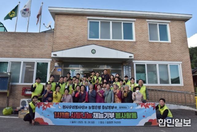 한민일보 서울포커스 황준형 기자 | 천안도시공사는 24일 천안시 입장면에서 ‘1사1촌 사랑나눔 재능기부 봉사활동’을 추진했다고 밝혔다.