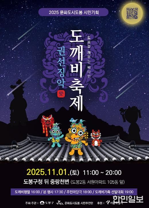한민일보 서울포커스 김봉순 기자 | 서울 도봉구가 오는 11월 1일, 도봉구청 인근 중랑천변(서원아파트 105동 앞)에서 ‘2025 문화도시도봉 도깨비축제’를 개최한다.