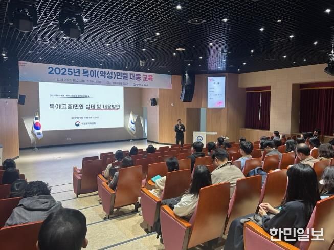 이번 교육은 최근 증가하고 있는 특이·악성 민원에 효율적이고 체계적으로 대응하기 위한 것으로, 민원 담당 공무원들이 전문적 해결 능력을 갖추어 교육 수요자의 만족도를 높이고 안전한 민원 환경을 조성하기 위해 마련됐다.