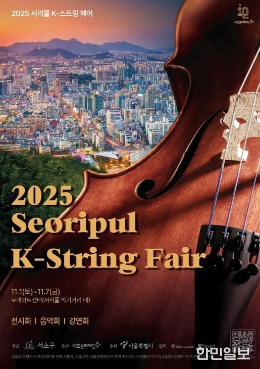 한민일보 서울포커스 곽중희 기자 | 서울 서초구와 서초문화재단은 11월 1일부터 7일까지 7일간 국내 유일 음악문화지구인 ‘서리풀 악기거리’ 일대에서 ‘2025 서리풀 K-스트링 페어’를 개최한다고 밝혔다.