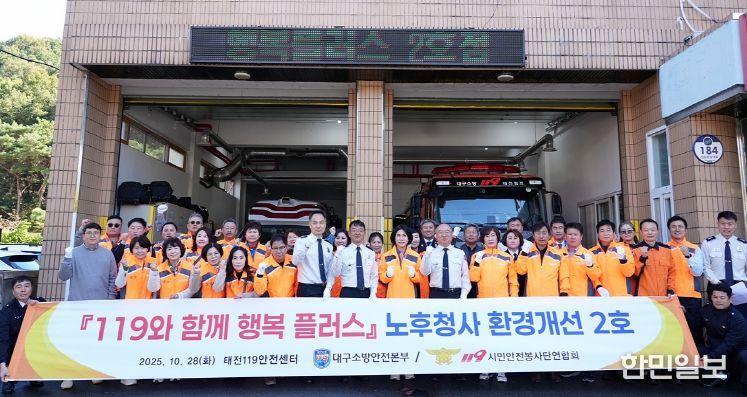 한민일보 서울포커스 최성훈 기자 | 대구소방안전본부는 119시민안전봉사단연합회와 함께 추진하는 ‘119와 함께 행복플러스’(노후 소방청사 환경개선) 2호 사업을 완료하고, 10월 28일 강북소방서 태전119안전센터에서 현판식을 가졌다.