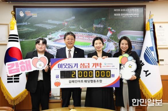 한민일보 서울포커스 김은금 기자 | 김해시는 30일 김해인아트웨딩협동조합에서 다문화가족 자녀 지원을 위한 성금 200만원을 기탁했다고 밝혔다.