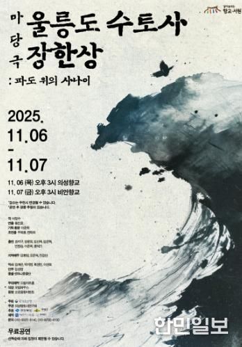한민일보 서울포커스 김봉순 기자 | 의성군은 국가유산청·경상북도·의성군이 주최하고 의성향토사연구회가 주관하는 마당극 '울릉도 수토사 장한상: 파도 위의 사나이'가 오는 11월 6일 오후 3시 의성향교와 11월 7일 오후 3시 비안향교에서 각각 개최된다고 밝혔다.