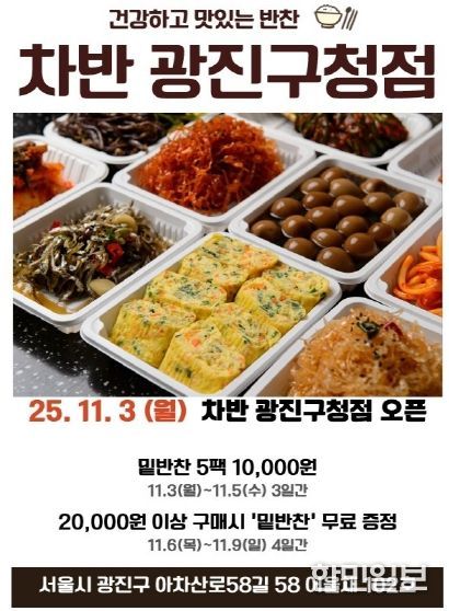 한민일보 서울포커스 임광현 기자 | 광진구는 오는 11월 자양동 어울채 행복주택(아차산로 58길, 58) 1층에 반찬가게 ‘차반 광진구청점’을 새롭게 연다.