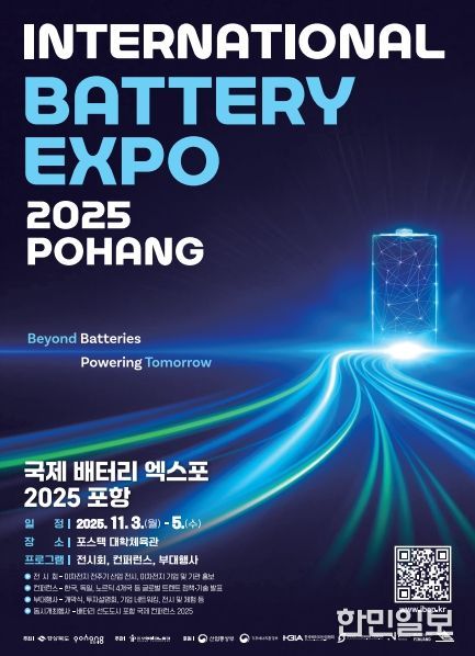 한민일보 서울포커스 김은금 기자 | 경상북도는 11월 3일부터 5일까지 3일간 포스텍 대학체육관에서 글로벌 배터리 산업의 최신 동향을 한눈에 볼 수 있는 ‘국제 배터리 엑스포 2025 포항’를 개최한다.