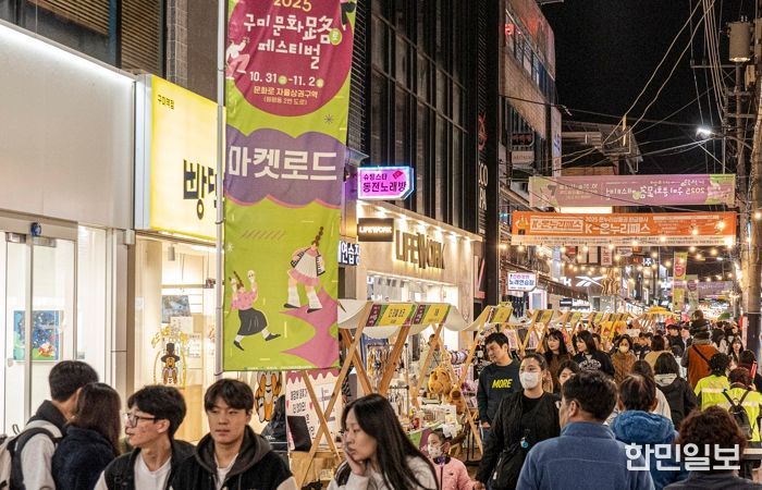 한민일보 서울포커스 김봉순 기자 | 구미시 대표 원도심 상권인 문화로에서 열린 ‘2025 구미 문화로 페스티벌’이 11월 2일 성황리에 막을 내렸다. 축제 기간 동안 일평균 8천~1만 2천명, 사흘간 약 3만명 이상이 방문하며 원도심 상권 활성화 가능성을 확인했다. 이번 축제는 10월 31일부터 11월 2일까지 3일간 문화로 자율상권구역 일원에서 열렸으며, ‘축제를 통한 빈 점포 활용, 원도심 경제 회복의 출발점’을 주제로 진행됐다.
