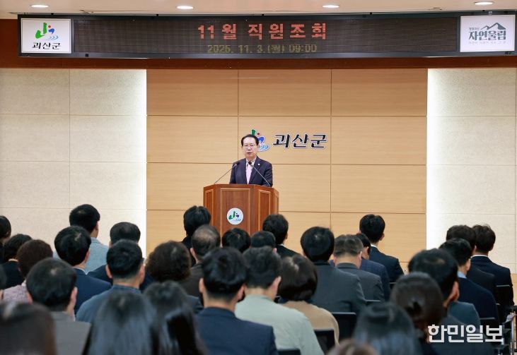 한민일보 서울포커스 김다남 기자 | 충북 괴산군은 3일 군청 대회의실에서 11월 직원조회를 열고, 올해 지역축제의 성과와 연말까지 중점 추진할 과제들을 공유했다.