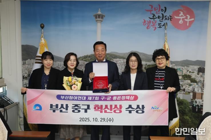 올해 7회째를 맞는'구·군 좋은정책상'은 부산참여연대 주관으로 매년 10월 29일 지방자치의 날을 기념하여 주민 삶의 질 향상에 기여한 정책을 추진한 기초지자체에게 수여하는 상으로, 중구는 올해 처음 이 상을 수상했다.